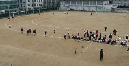 2月15日(水)、運動場にて、5年生・6年生は、持久走で1000m走って計測していました。さらに、残りの時間は、縄跳びをしていました。