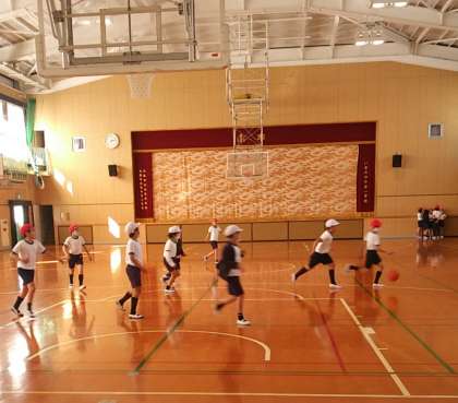 2月28日(火)、4年生は、体育館にて、バスケットボールのゲームをしていました。