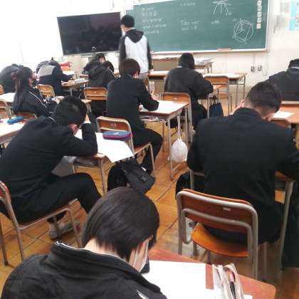 3月2日(木)、9年2組では、入試対策問題の数学の過去問をやっていました。