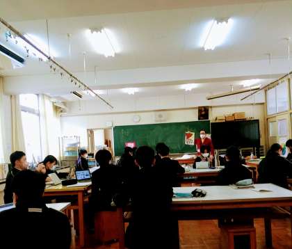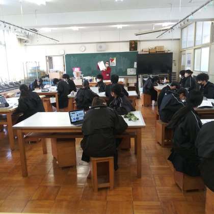 3月3日(金)、8年生は、タブレットを利用して、着物のデザインを和柄で描いています。今年度の授業は、残り2回です。