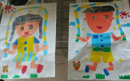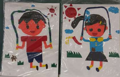 3月3日(金)、1年生の児童作品です。とてもいきいきとした表情が溢れています。