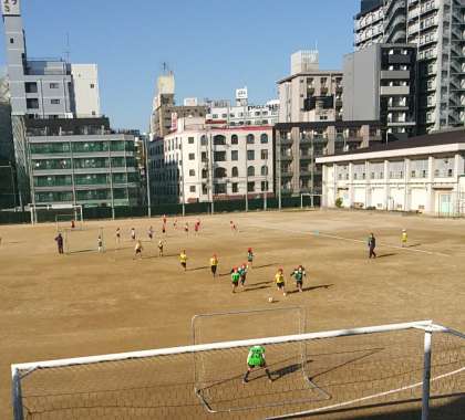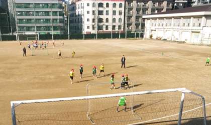 3月3日(金)、運動場にて、3年生の児童たちが、お互い声を出し合いサッカーを楽しんでいました。