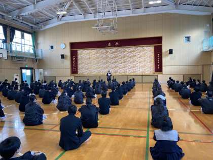 「おめでとう」という声かけに、9年生は笑顔で応えていました。
