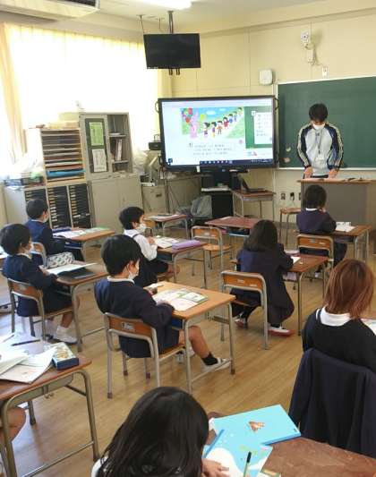 3月6日(月)、わかくさ保育園の子どもたちが、1年生の算数の授業の様子を見学していました。