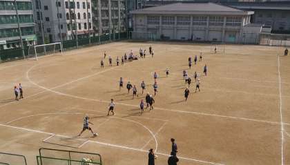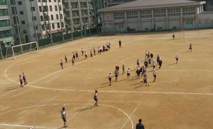 3月8日(水)、5・6年生男子が、運動場にて、ミニサッカーゲームをやっていました。男子は、4チームに分かれて、ボールは、1球で行われていました。