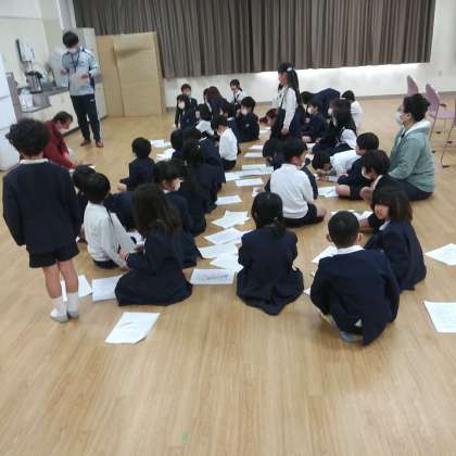 3月8日(水)、交流ホールにて、1年生たちが、『祝う会』で発表する台本のセリフ担当決めをやっていました。