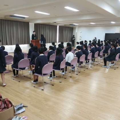 3月8日(水)、交流ホールにて、6年生が、卒業式の一連の流れの練習をしていました。
