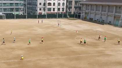3月8日(水)、運動場にて、3年生が、クラス別のミニサッカーゲームをやっていました。