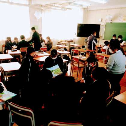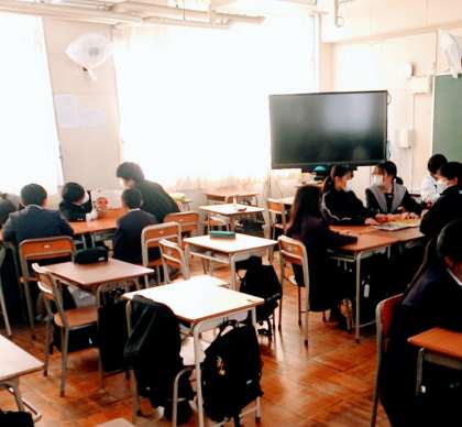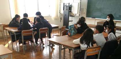 3月8日(水)、8年生たちが、3クラスに分かれて、3年生たちに、絵本を読み聞かせていました。
