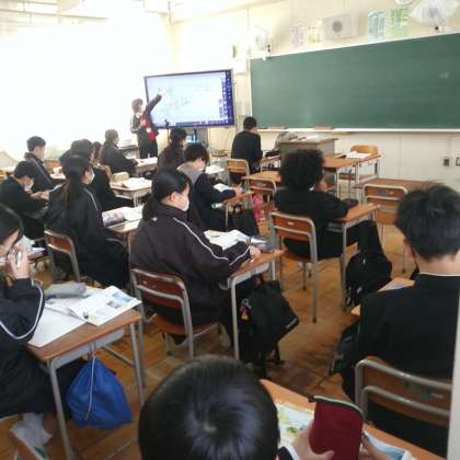 3月9日(木)、8年1組では、社会科の授業で、電子黒板を活用していました。