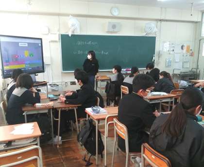 3月13日(月)、8年2組では、20分間程の小リスニングプリント3枚自己採点し、その後、リスニングの長英文をやって、グループ活動をしていました。