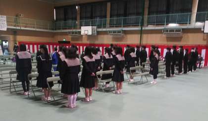 3月13日(月)、体育館にて、9年卒業生が、最後の練習が行われ、予行後、学年の教職員からメッセージがあり、思い出のビデオで盛り上がっていました。