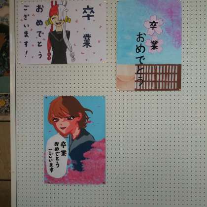 3月14日(火)、正面玄関に飾られた美術部の作品です。