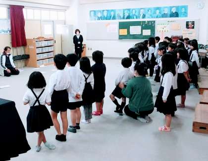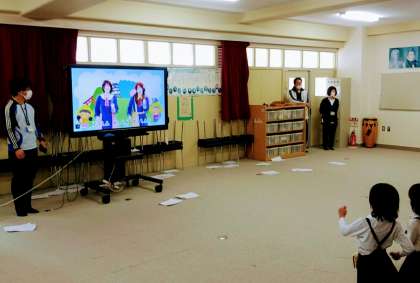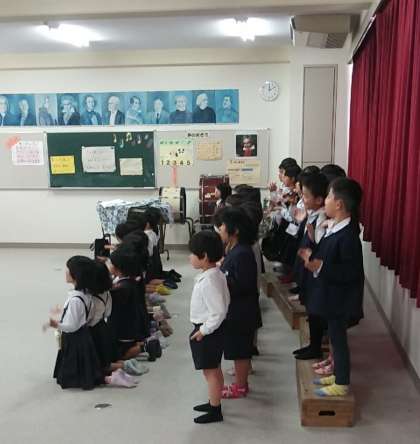 3月16日(木)、1年生は、音楽室にて、『新今宮小学校校歌』と新1年生に向けての歌『いちねんせいになったら』を練習し、さらに、『祝う会』のセリフ合わせをしていました。