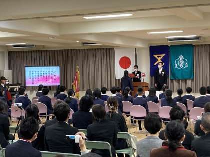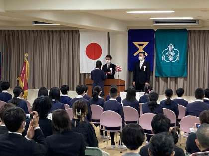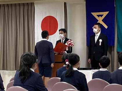 クラスの代表児童が校長先生から証書を受け取る様子です。