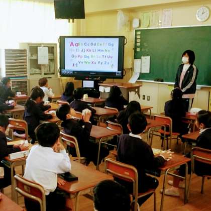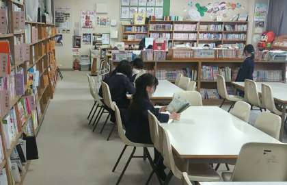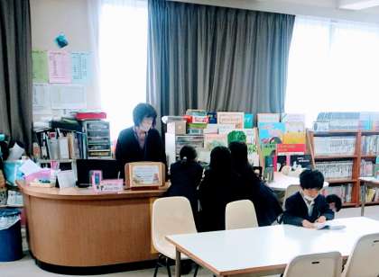 3月20日(月)、2年生では、教室で、英語の歌を楽しく歌ってから、図書室で、いろいろな本を戸棚から選んで、読んでいました。