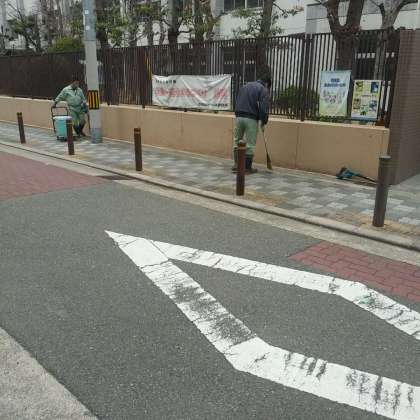 3月23日(木)、雨天時以外の時には、毎朝正門前から通用門までを綺麗に掃き掃除しています。