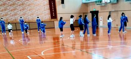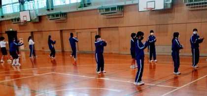 3月23日(木)、体育館にて、8年生女子は、まず、各グループごとに念入りに、リハーサルをしていました。
