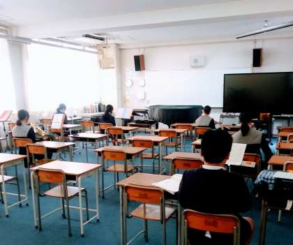 3月24日(金)、音楽室にて、吹奏楽部が活動していました。