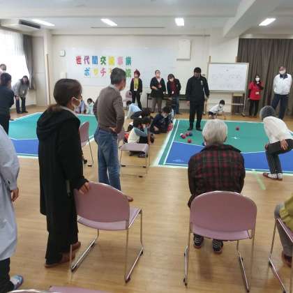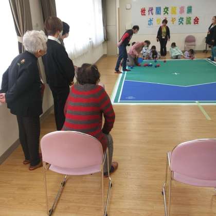 3月29日(水)、交流ホールにて、新今宮小児童たちと地域の方々との世代間交流会で、『ボッチャ』をやっていました。