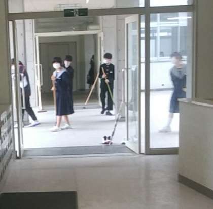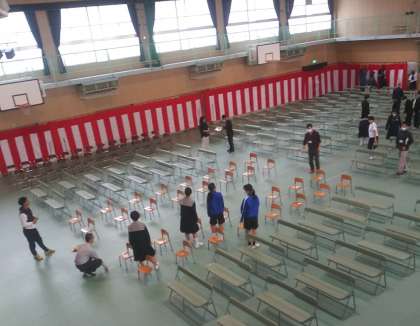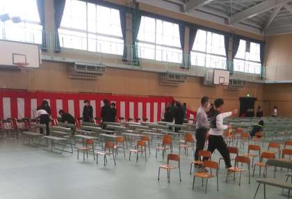 4月6日(木)、新8年生の生徒たちが、新7年生の教室・廊下・階段・トイレと体育館の準備をしてくれました。