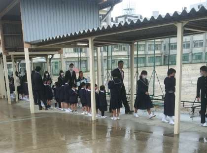 4月7日(金)、新1・7年生が真新しい制服を身に纏い登校し、体育館に入場します。