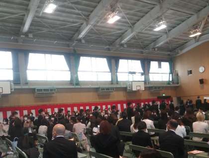 4月7日(金)、新7年1組・2組が入場し、その後、新1年生が入場して来ました。