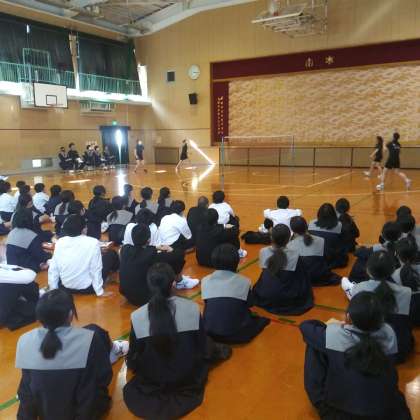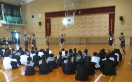 4月11日(火)、5・6・7年生に向けて、主に体育館で活動しているバドミントン部とバスケットボール部の紹介がありました。