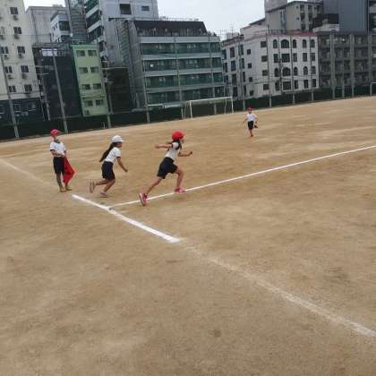 4月14日(金)、3年生が運動場で、50m走の計測をしていました。がんばる姿がカッコいいですね。