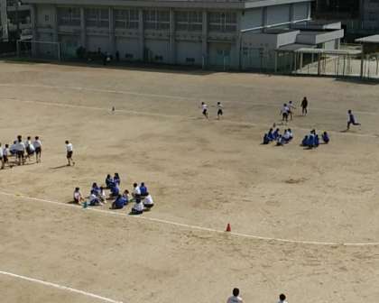 5月2日(火)、運動場で、9年生たちがリレーをしていました。生徒たちはみな真剣にバトンを繋いでいました。