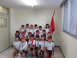 放課後の応援団の練習のようすです。今日ははちまき・たすきを身につけて、写真撮影をしました。衣装を着ると、よりやる気に満ちた表情になりました。運動会が盛り上がるよう、練習に励んでいきましょう。