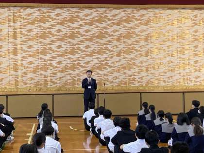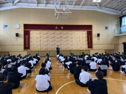 今日、5月8日は「いじめについて考える日」です。「いじめ」はされた相手をいやな思いにさせ、生命をも脅かす行為であること、人として絶対に許せない行為だと伝えました。生徒の皆さんは真剣な表情で聴くことができました。