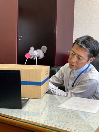 まず最初に校長先生から、Teamsを活用して「いじめについて考える日」の説明があり、続いていじめの第一歩となるお友達への悪口は止めるよう、願いを込めた校長先生自作の人形劇がありました。