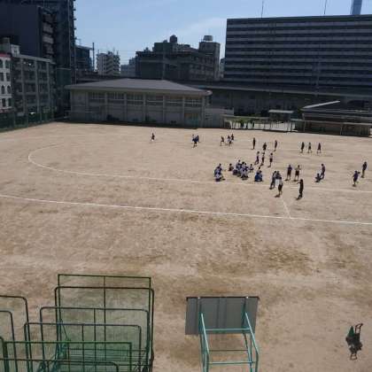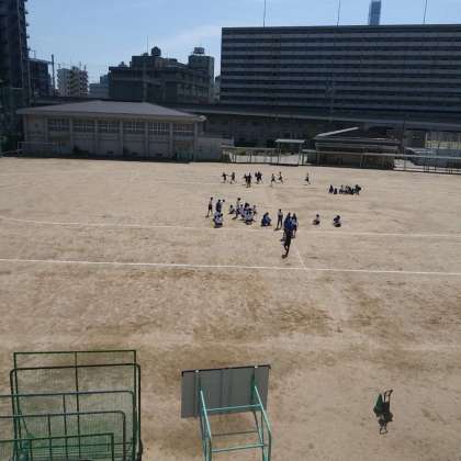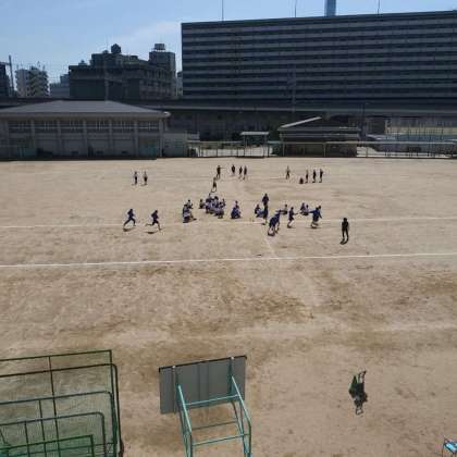5月9日(火)、9年生は、運動場でリレーのバトンパスの練習をし、実際に4グループに分かれて競争していました。