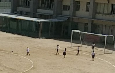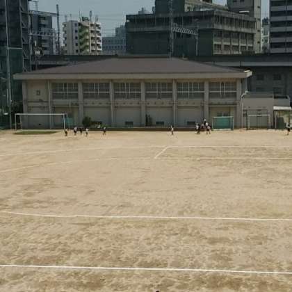 休み時間、小学生が運動場で「サッカー」や「ドッヂボール」をして、友だちと仲良く遊んでいます。小中一貫校の特長でもある広い運動場を思う存分活用しています。