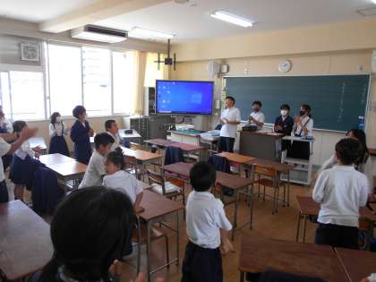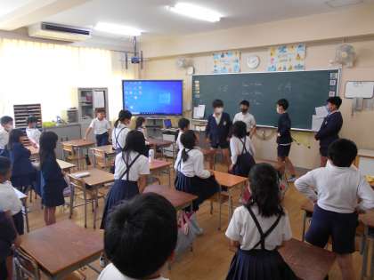 5時間目、たてわり班活動に取り組みました。一つの班に1〜6年生の子どもたちがそれぞれの班に分かれて班を作っています。この班でこれからの集会活動を行っていきます。どの班も6年生が中心になって、楽しい遊びを考え、班の友達と仲良く活動していました。