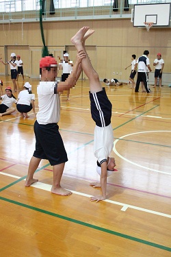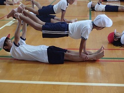 5・6年生の組体操では2人技を中心に練習しました。倒立や肩車などの技を練習しました。子どもたちの疲れもたまってきているはずです。無理をせず、体をしっかり休めることも大切です。家での体調管理もよろしくお願いします。