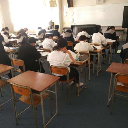 5月16日(火)、7年生は、「音名や階名」のプリント学習と並行し、校歌の歌のテストに取り組んでいました。