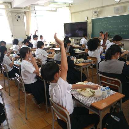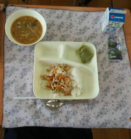 5月17日(水)、今日の献立は、かやくご飯、みそ汁、まっ茶ういろう、牛乳です。「まっ茶」は、原料の碾茶(てんちゃ)の葉を石うすなどで細かく粉状にしたものをいいます。碾茶とは、日光を当てずに育てた茶葉です。