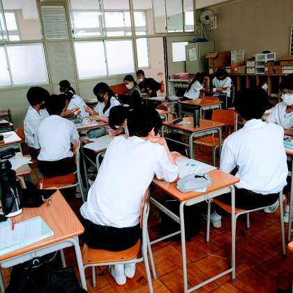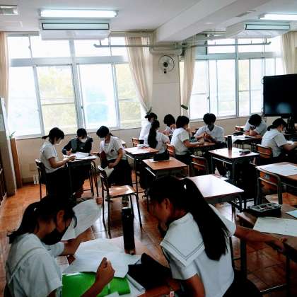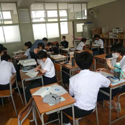 5月18日(木)9年習熟度別教室で、明日のテストに向けて担当の先生から配付された数学プリントに取り組んでいました。自学自習も頑張っていました。