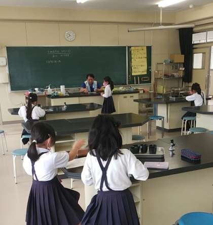 5月19日(金)、小学校の理科室で、児童たちが、ポットから色々な草花の芽が出た様子をスケッチしていました。