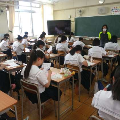 5月23日(火)、9年生は、「環境への適応能力」として、「体調の変化への配慮を怠らない」「熱中症!」「気温・湿度・温度調節」に関する学習をしました。