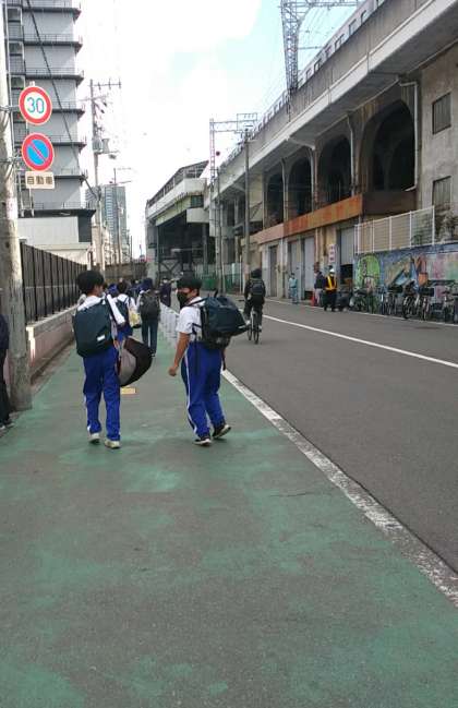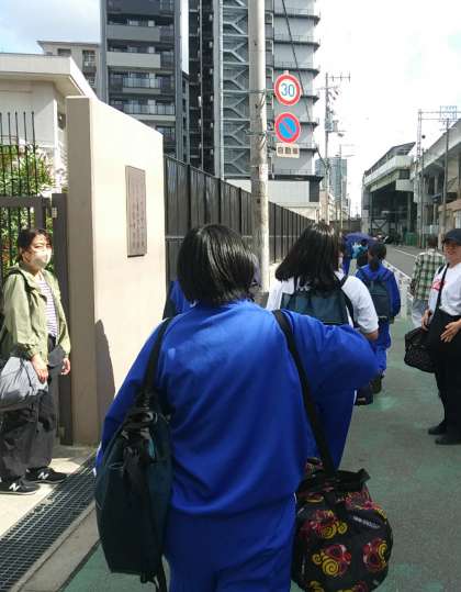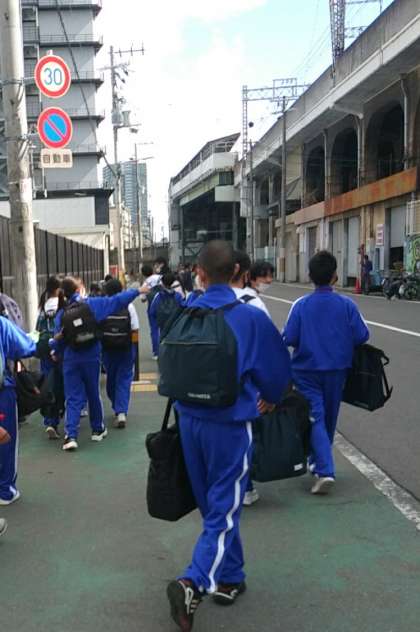 5月24日(水)、7年生たちが、東門から出て、新今宮駅に向かい海洋センターに出発しました。