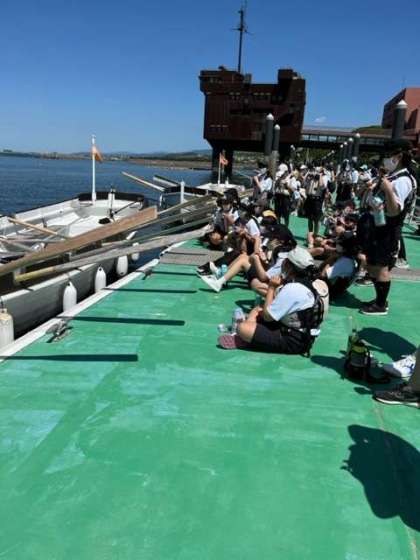 7年生 一泊移住 さあボートに乗り込もう