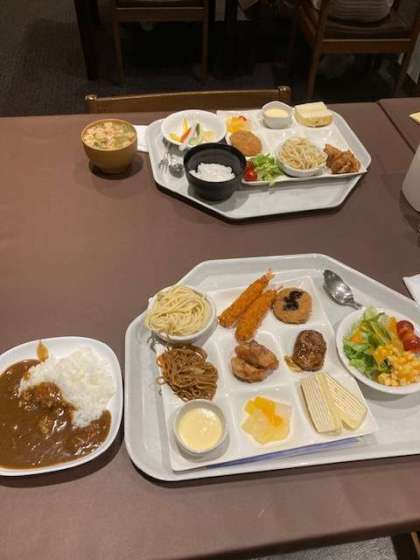 楽しみにしていた夕食です。バイキング形式です。唐揚げとカレーが大人気でした。