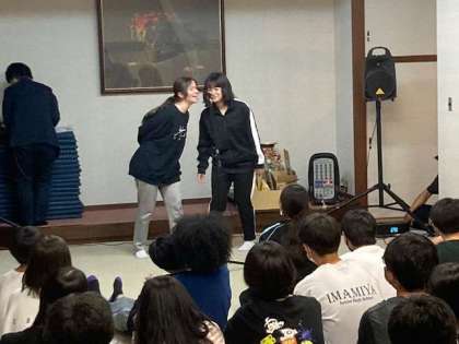 初日の夜レクの様子です。有志による漫才、ダンス、歌のパフォーマンスがありました。その後クイズやビンゴ大会、先生からのサプライズもあり大盛り上がりでした。