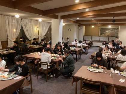 この修学旅行2日めの夕食です。豊富なメニューで、飽きずに沢山頂けました。