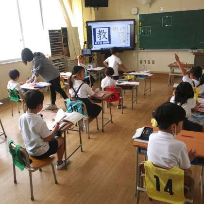 漢字の筆順を確認して、漢字を丁寧に書く練習に集中しています。また、教科書の文章を音読する声も表現豊かです。2年生の成長を感じます。