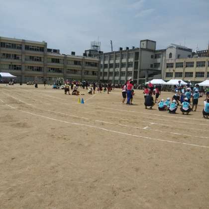 騎馬戦の様子です。気温が段々と上がる中、威勢よく周りをよく見て動いています。
