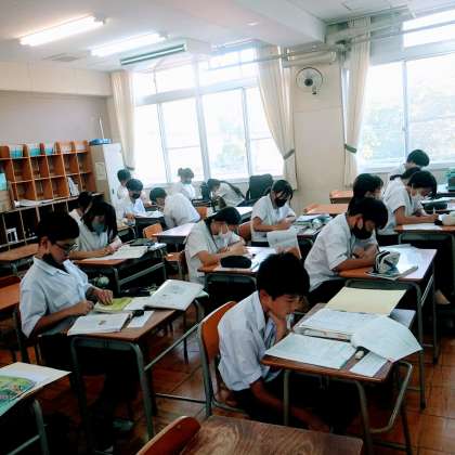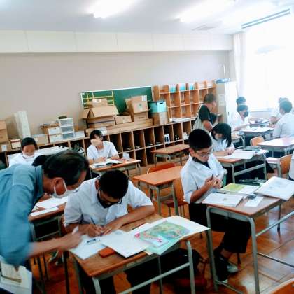 6月19日(月)、9年習熟度別教室にて、期末テスト前学習会に19名の生徒たちが集まり、先生たちに質問をしながら、自学自習に取り組んでいました。
